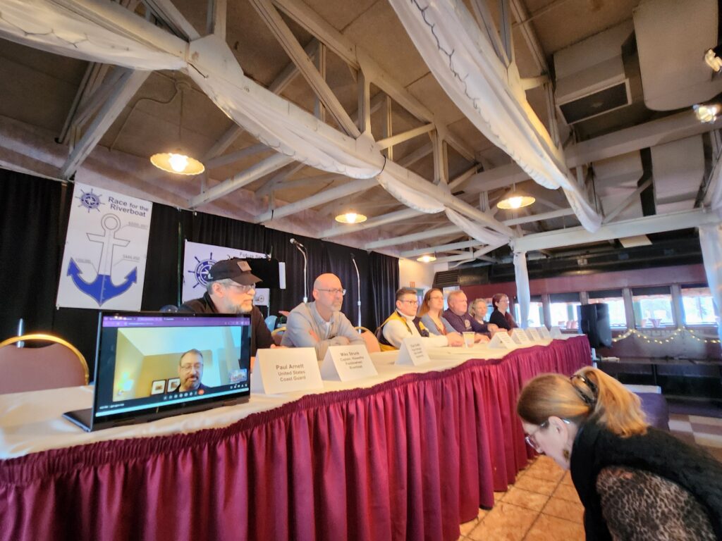 On Sunday, February 18, 2024 the Central Susquehanna Riverboat Society hosted a public kickoff for the riverboat project with the announcement of a grant from the 1994 Charles B. Degenstein Foundation and a lease agreement with the Borough of Northumberland for a dock location northwest of Pineknotter Park. The event, held at Front Street Station in Northumberland, featured a panel of representatives from the CSRS board, local and county government, the Hiawatha riverboat, the Coast Guard, and more. Guests enjoyed food, live music, and a raffle fundraiser. CSRS volunteers collected contact information from guests interested in future volunteer work and fundraising efforts and encourages anybody interested to email centralsusquehannariverboat@gmail.com or attend a future fundraising event or board meeting.
